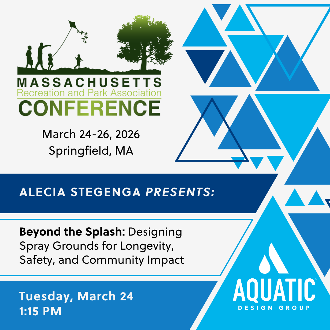 Alecia Stegenga will be presenting at the 2026 Massachusetts Recreation & Park Association Annual Conference! He’ll explore how spray grounds can be designed for safety, accessibility, sustainability, and long-term success—not just opening day. Learn how thoughtful planning can help your community create water play spaces that are easier to maintain, more inclusive, and built to serve generations to come.